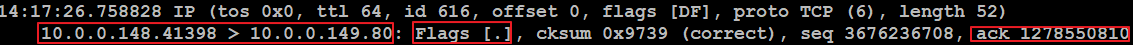 클라이언트 10.0.0.148에서 41398 포트를 통해 서버 10.0.0.149 80번 포트로 들어온 것을 확인 가능합니다.