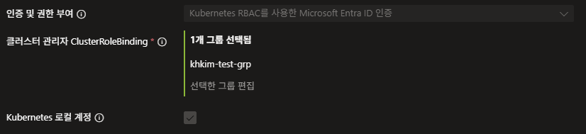 "클러스터 관리자 ClusterRoleBinding" 은 Entra ID 사용자 중에서 Kubernetes 관리자 권한을 가질 그룹 입니다.